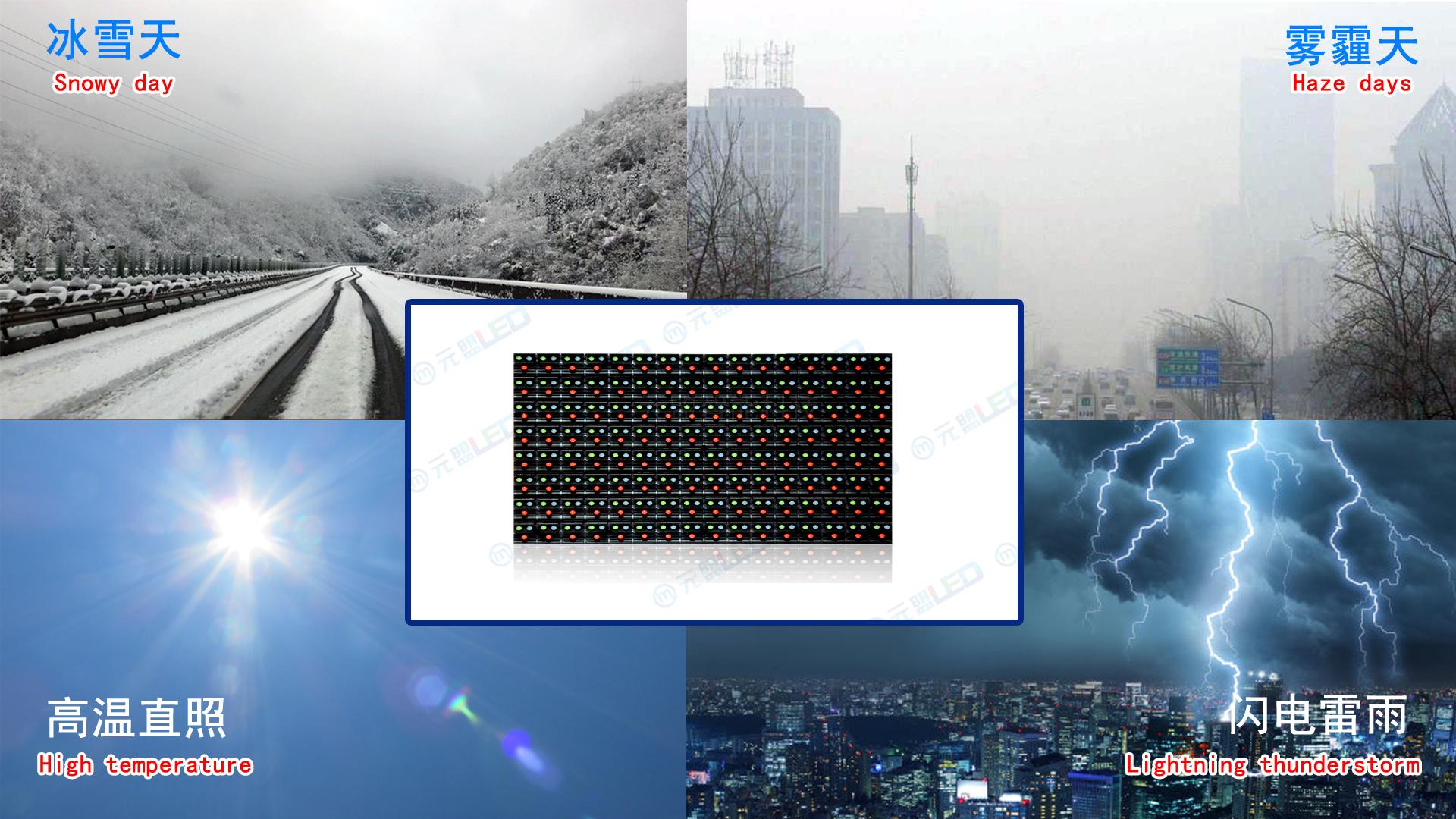 ? ? ?屏體可在腐蝕和高溫嚴酷環(huán)境下使用數(shù)年之久,在公路上,最高使用溫度可達70度以上,LED燈使用的扛紫外線環(huán)氧樹脂封裝,這種封裝可抵擋太陽光直射,另外屏體具體防水、防腐蝕、防雷電、防靜電、防風(fēng)、防曬、防熱、防凍等功能。